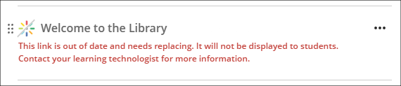 On the 8th of September 2025 Padlet will be removed from the Content Market in NILE, meaning that all links to existing Padlets which have been embedded in NILE courses via the Content Market will stop working and will become automatically hidden from students. Such links will be clearly marked to staff, as shown in the screenshot below: